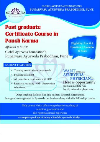 This ‘POST GRADUATE CERTIFICATE COURSE IN PANCHAKARMA ’ course is useful for an Ayurveda graduate to treat patients successfully. Its clearly meant to produce an efficient and confident Ayurveda physician.